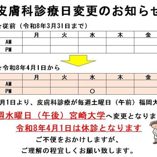 令和8年4月からの皮膚科診療日変更のお知らせ
